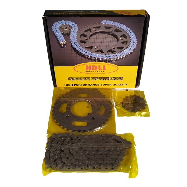CHAIN AND SPROCKET SET HONDA WAVE 110 WITH GOLD REINFORCED CHAIN