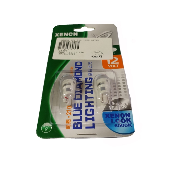 ΛΑΜΠΑ 12V Τ10 1LED ΛΕΥΚΗ ΖΕΥΓΟΣ XENCN